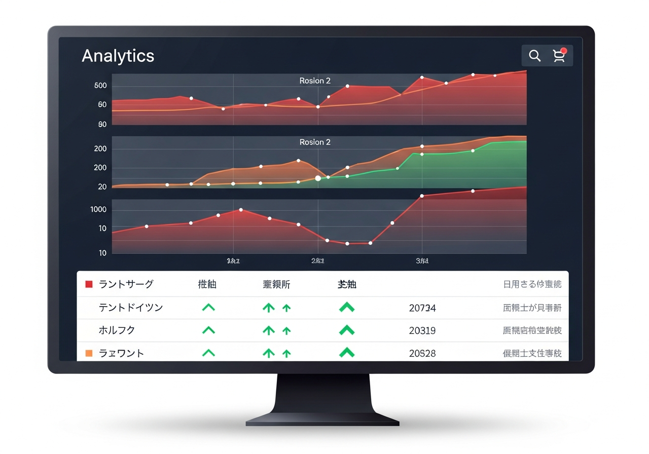 ターゲットキーワードでの順位変動を自動追跡。競合分析も可能。